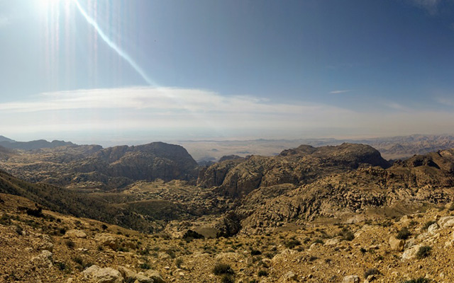 Our itinerary started in the Dana Nature Reserve with a spectacular view over the valley and the famous Dana to Petra trek snaking away below us. The trails here are well-trodden, weaving through the valley with steady ascents and descents throughout. The paths are rocky underfoot, so I was very happy to be wearing my trusty hiking boots. With views unlike anything I’d seen before we made our way to our first camp site which was flanked by mountains of limestone and sandstone. Sipping sweet tea around a camp fire, we got to know each other before retiring to our tents for our first night under the stars.