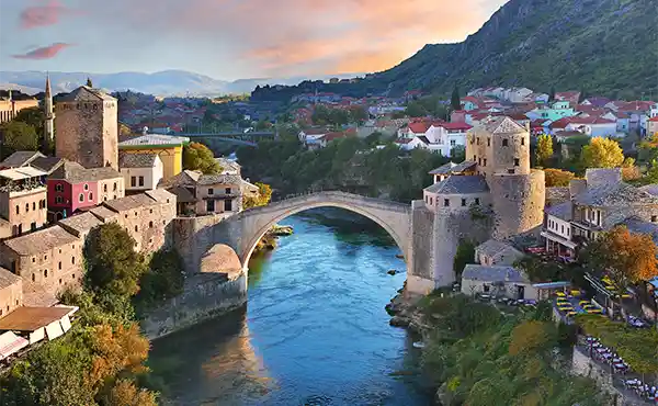 Positioned on the Balkan Peninsula, Bosnia & Herzegovina's terrain is predominantly mountainous, especially in the central and eastern areas, which are characterised by the Dinaric Alps. Find out more about Bosnia & Herzegovina.