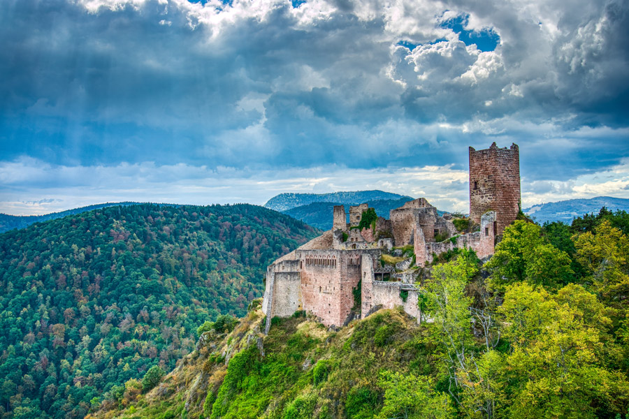 Embark on a scenic journey through a charming chestnut forest to reach Hohlandsbourg Castle before continuing to the final destination of your hike, Eguisheim. Later, a taxi will take you to Colmar SNCF station for your onward or return journey.