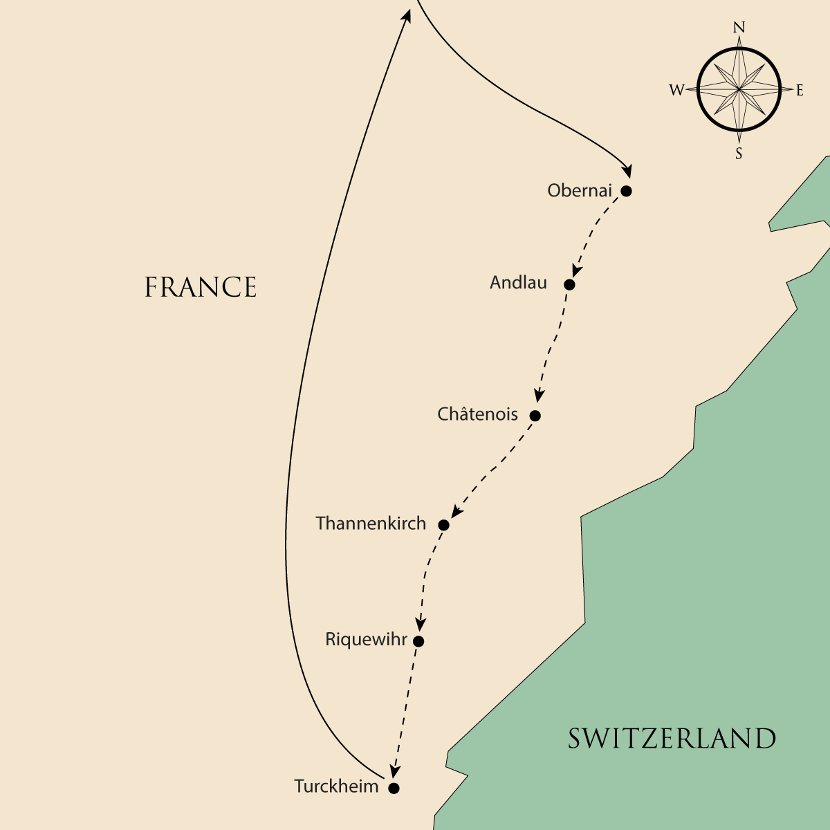Gently ascend through the Andlau forest and pass through a picturesque medieval town and vineyards to the fortified city of Châtenois.