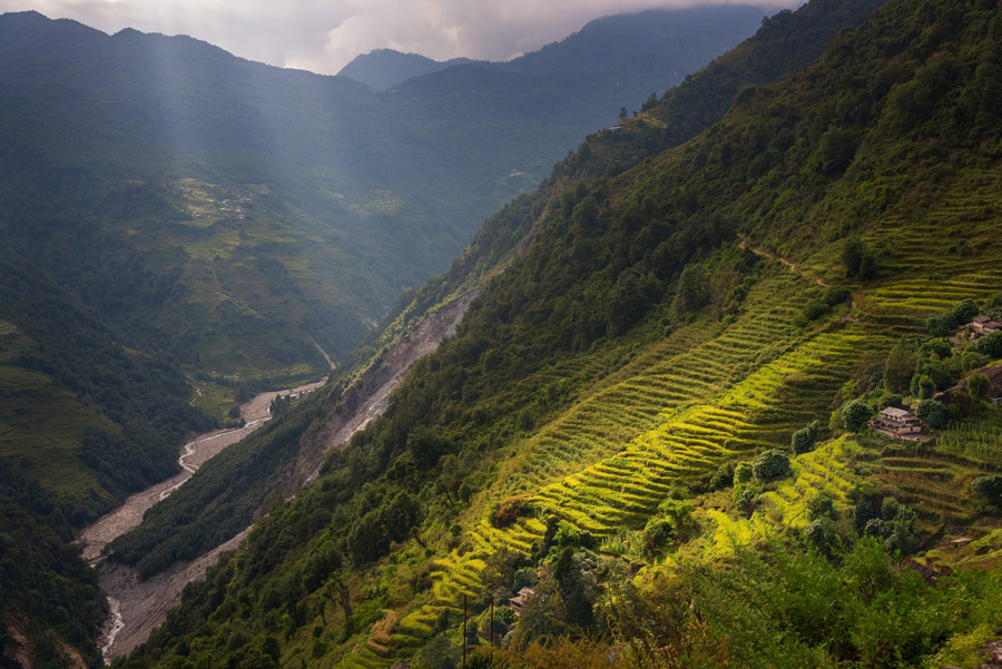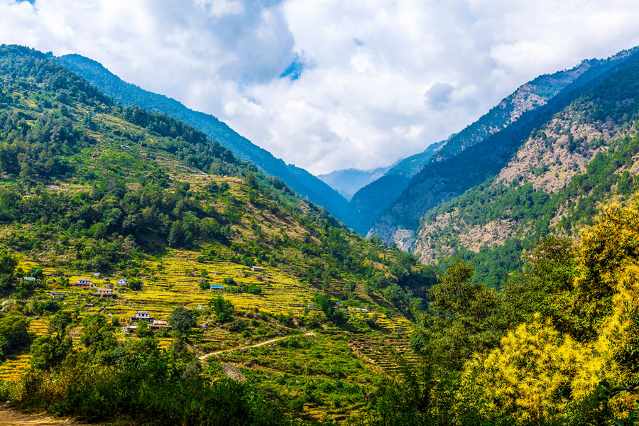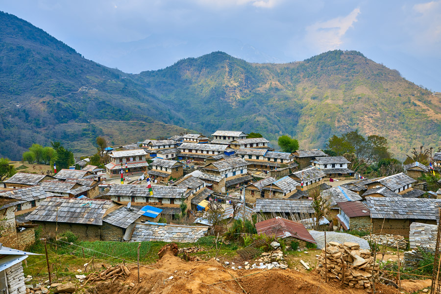 Enter Kimrong Khola Valley where the trail evens out for easier walking and continue your journey in short, steep switchbacks and through open fields to the ’Gurung’ village of Ghandruk.