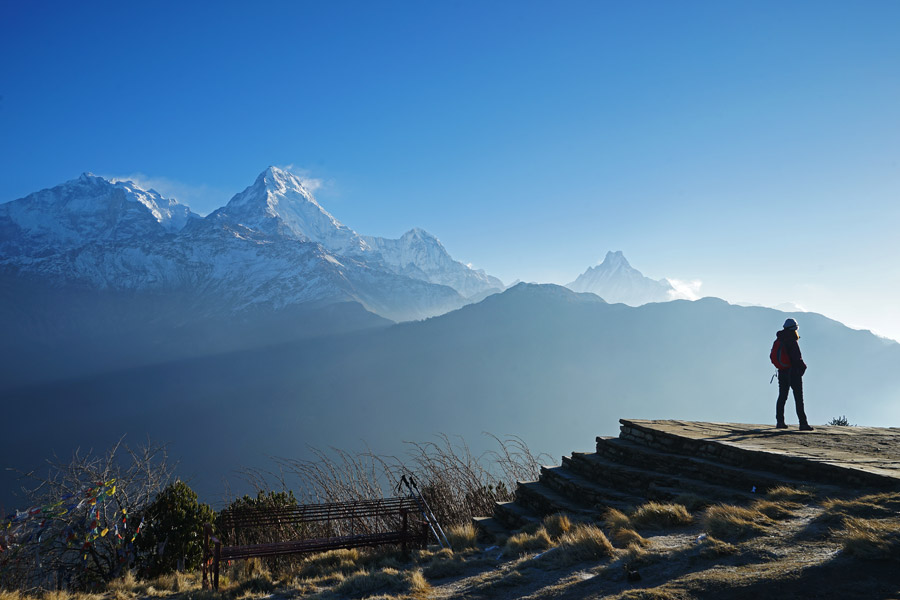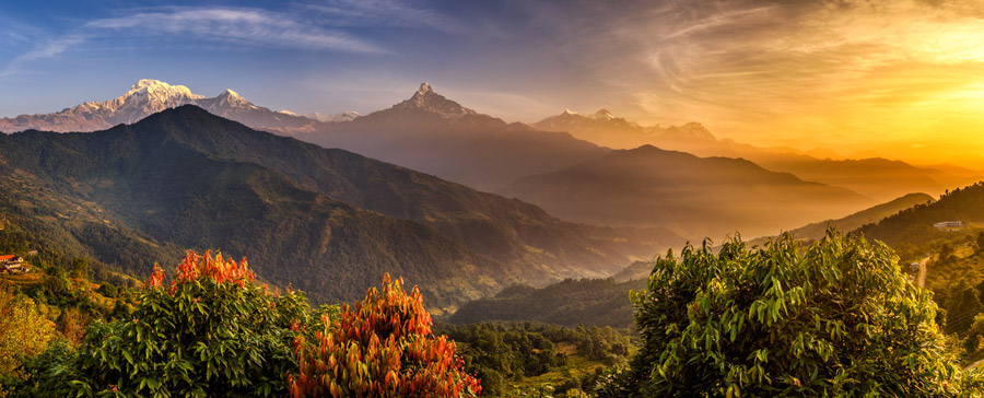 View the spectacle of the early morning light turning the snow-covered Himalaya pink as the sun rises and a magnificent mountain panorama unfolds. Enjoy close-up views of Annapurna South and the satellite peak of Hiunchuli, as well as the iconic Fishtail and, on clear days, Pokhara and its lake.