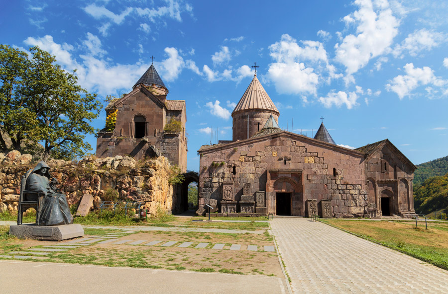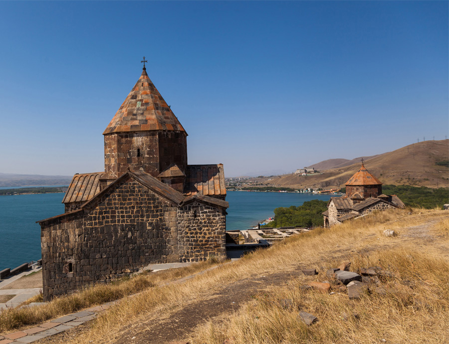 In a beautifully photogenic location, the Sevanavank Monastery is set on a peninsula in Lake Sevan. We follow the lake shoreline road for around an hour before turning west and driving along part of the Silk Road to the Selim Pass (2,530 metres), visiting a Caravanserai at Selim that dates back to 1332. Marco Polo is known to have passed through this way too.