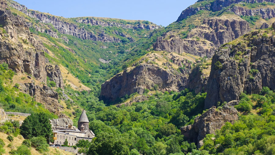 After breakfast, we drive to Goght village (approx 90 minutes) for the start of our first walk in Armenia. Initially there is around 400 metres of continual ascent up a 4WD drive track and out of the Garni Canyon to reach a high plateau (approx 1,900 metres). As we continue, there are breathtaking views down into the canyon and to the strategically located Geghard Monastery below.
