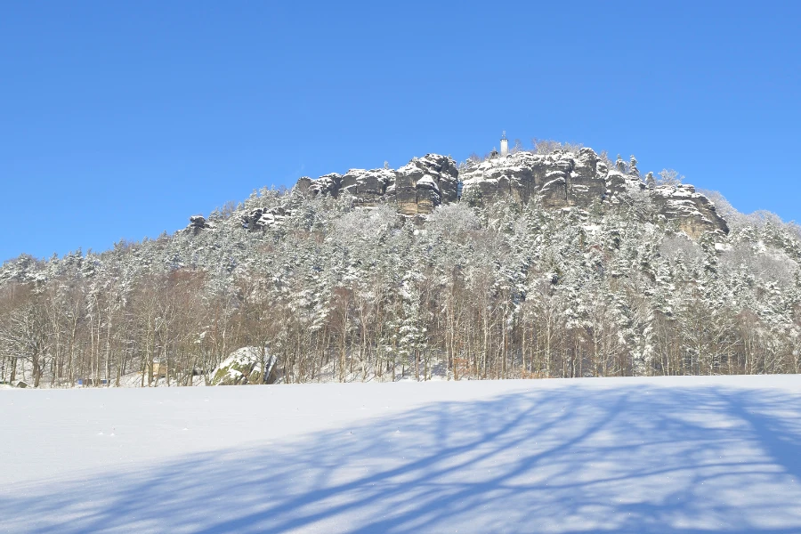 Start the day in the village of Cunnersdorf and ascend through pine forests to rocky viewpoints. Pause at Spitzstein and Schneebergblick for superb views over the possible snow-covered Elbe Sandstone range, including the Schrammsteine and Hoher Schneeberg.