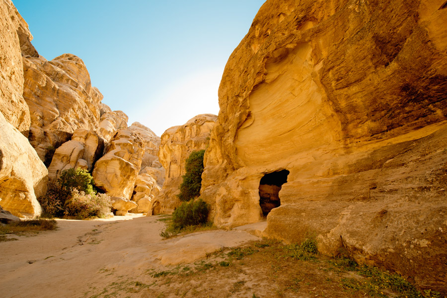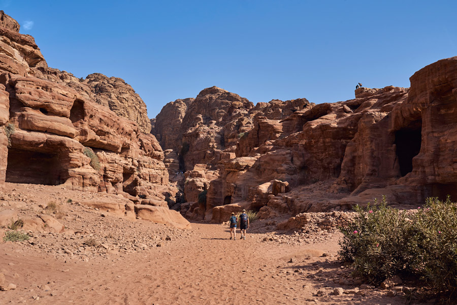 An old Nabataean route leads from Little Petra, out of the valley and towards the site of Petra itself and today you follow this trail right to the ‘Back Door’ entrance of Petra. This route offers an exciting alternative entrance to the site, as one of its most iconic buildings, The Monastery, is suddenly right in front of you as you approach from this direction. You then walk down Nabataean steps leading towards the Treasury and the rest of this world-famous site.