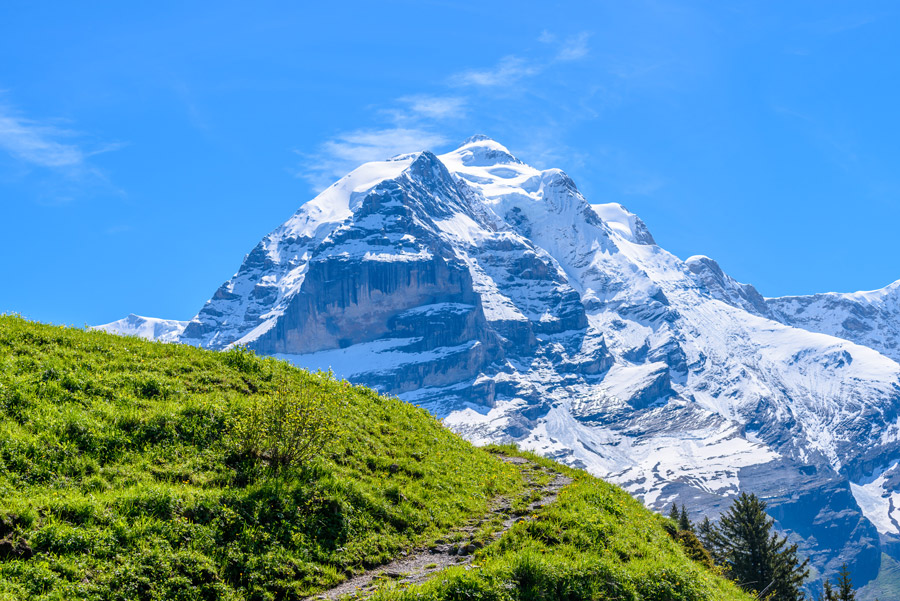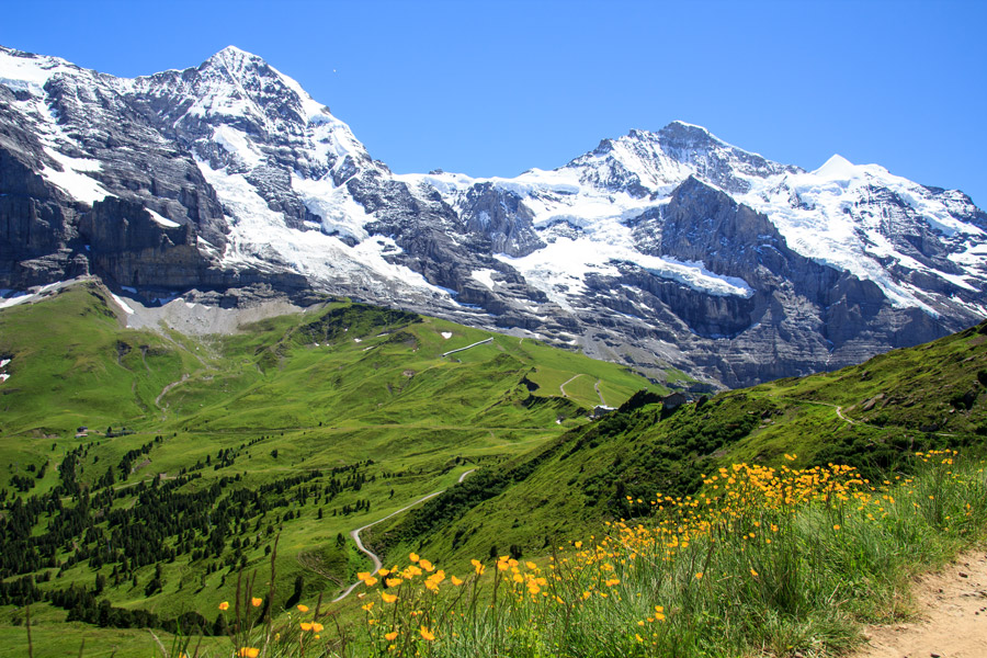 This circular walk follows the path to Bort, passing blossoming alpine meadows and the sharp, jagged peaks of the Wetterhorn, Schreckhorn and Finsteraarhorn. You then return to Grindelwald and on to Wengen by cable car or train.