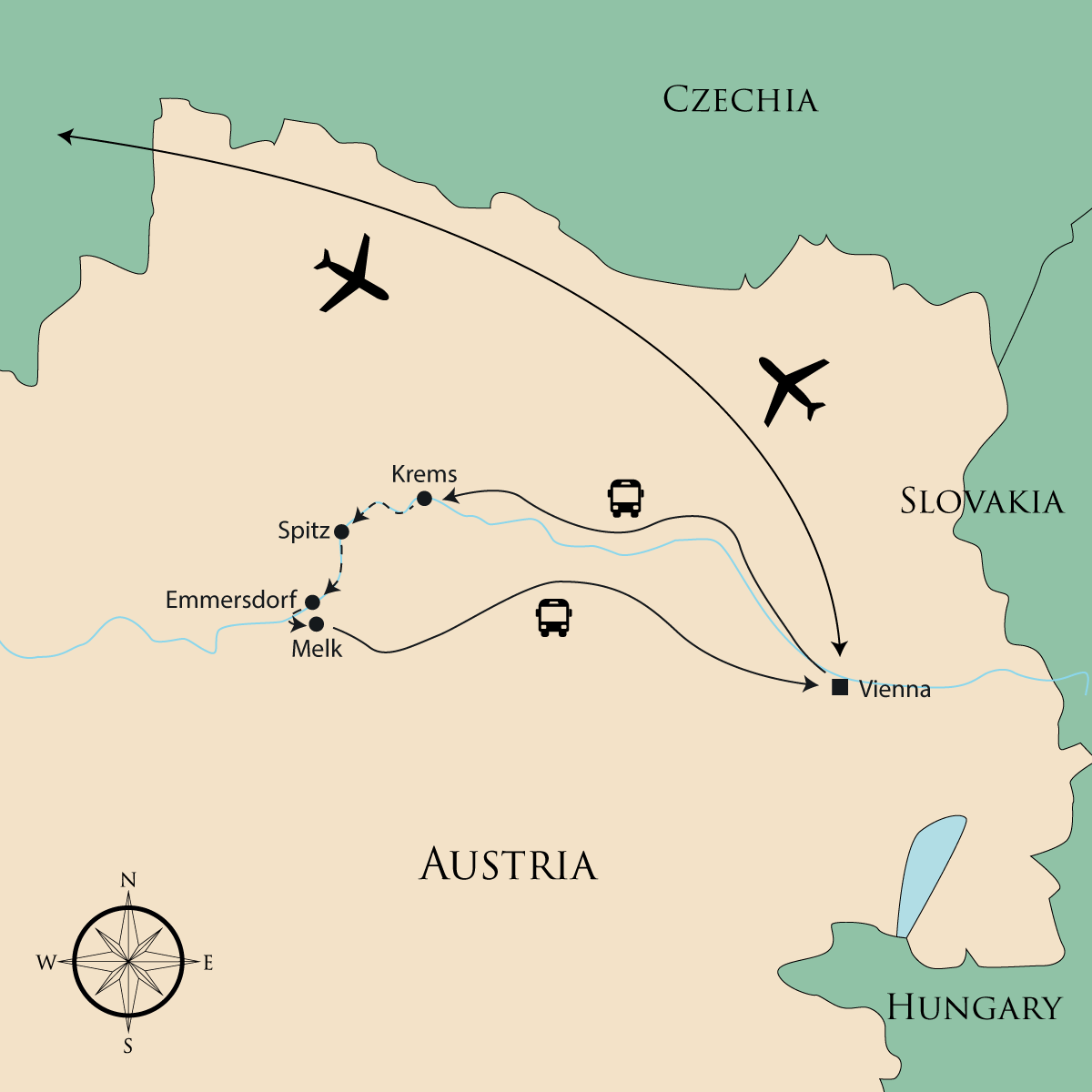 Today's hike is through Stein and its wine regions, follow gravel paths near vineyards and forest trails. Along the walk, you're treated to breathtaking views of the diverse landscape and the Danube River.
