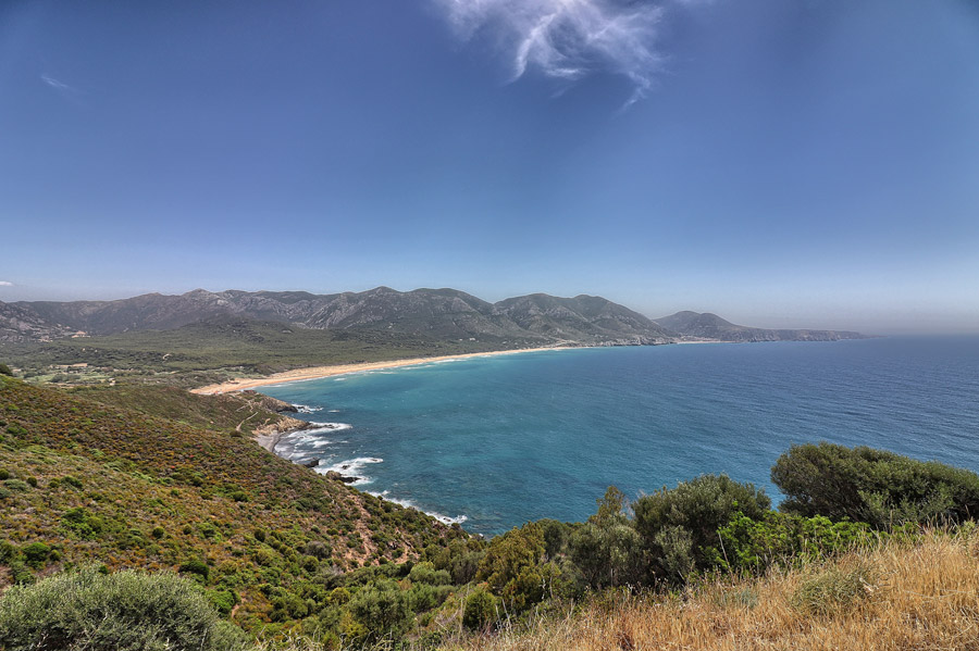 Starting in the village of Portixeddu, walk towards Capo Pecora with its coarse, light coloured sandy beaches. Continuing along the trail, reach La Vedetta, a small World War II fort where you can marvel at the sensational views along the wild sandy beach of Scivu.