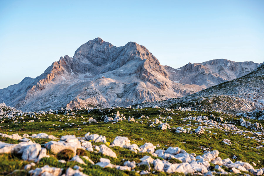 We take a slight descent towards the mountain refuge, where we spend our first evening. From here, the views of Mount Triglav are spectacular, and for those craving more walking we can climb the neighbouring summit (an additional hour’s hike) for an alternative view of Slovenia's highest peak.