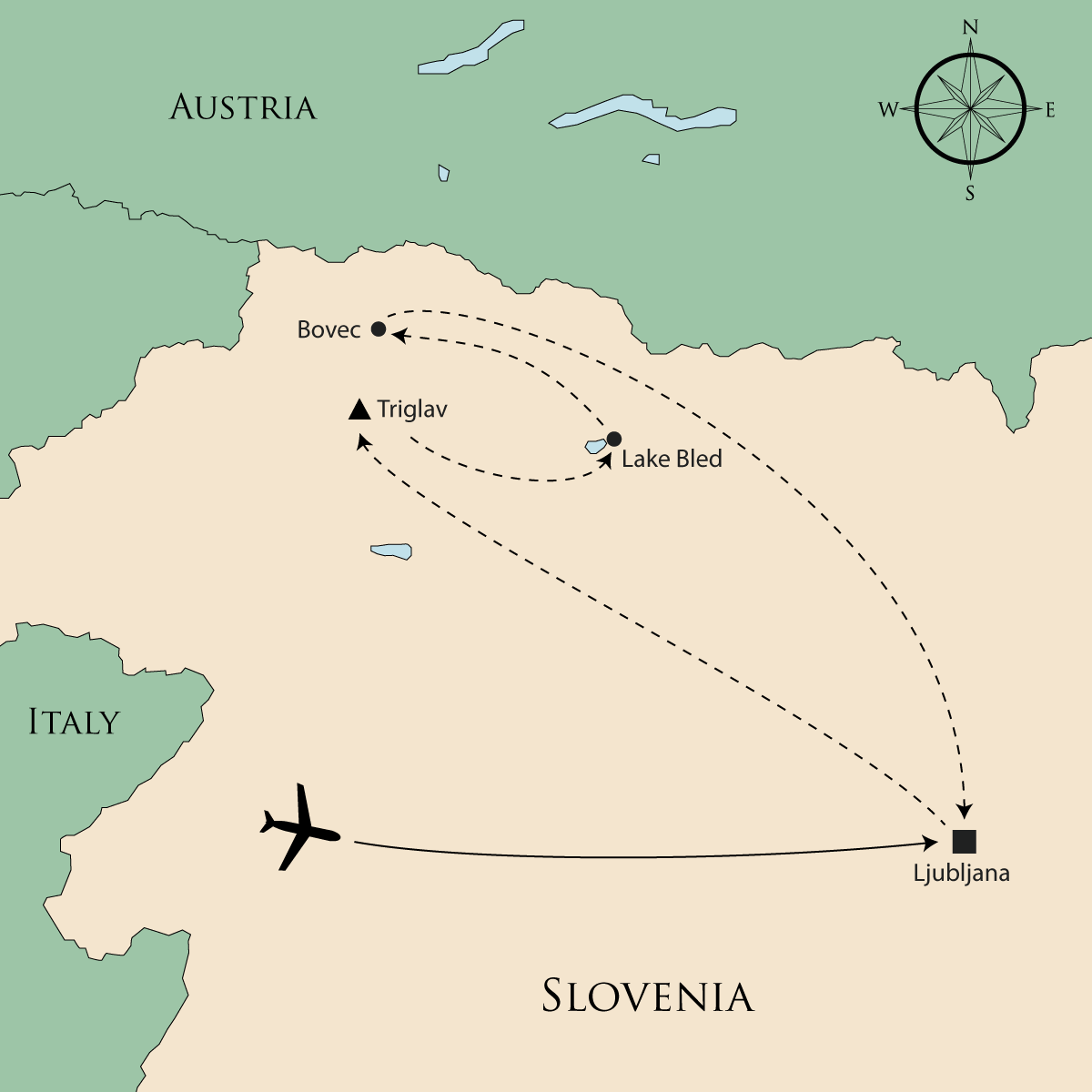 The trip begins in the capital Ljubljana and then journeys into Europe's largest natural park, Triglav, where wildlife and flora abounds. We then stop at the must-see town of Lake Bled, the quieter but just as beautiful Lake Bohinj, and the refreshingly stunning region of Soca before the tour ends in the Vipala Valley where we can enjoy its culinary delights including wine tasting!