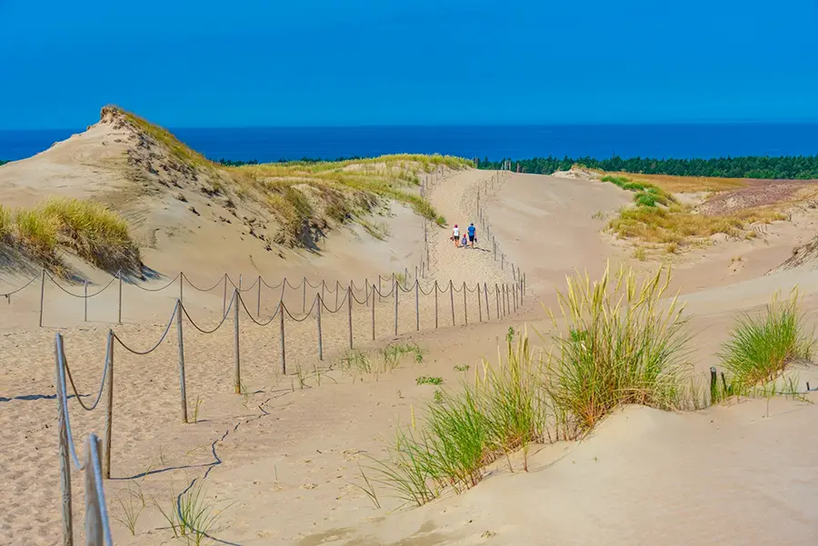 Hike from Nida through stunning natural scenery and past historical landmarks. Starting with views of the Parnidis Dune, the trail leads to the Throne of Neringa, the sundial, and the Windward sculpture, before continuing through the forest to the Baltic Beach. On the way back to Nida, you pass the Evangelical Lutheran Church and the Thomas Mann Museum.