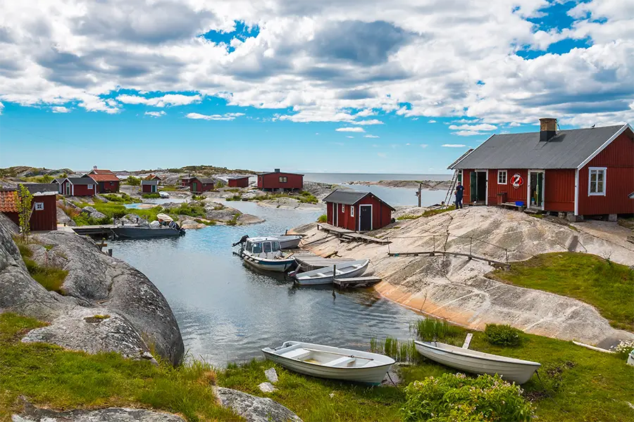In the morning, take the bus back to Dalarö and enjoy its colourful streets before the day's island hopping commences. Take a scenic boat trip to the island of Huvudskär or Fjärdlång, depending on the island you visit, either follow a trail across untouched landscapes by the coast or to the highest point of the Stockholm Archipelago. After exploring, continue by boat to Kymmendö where you have time to wander around. The final boat ride of the day takes you to Utö.