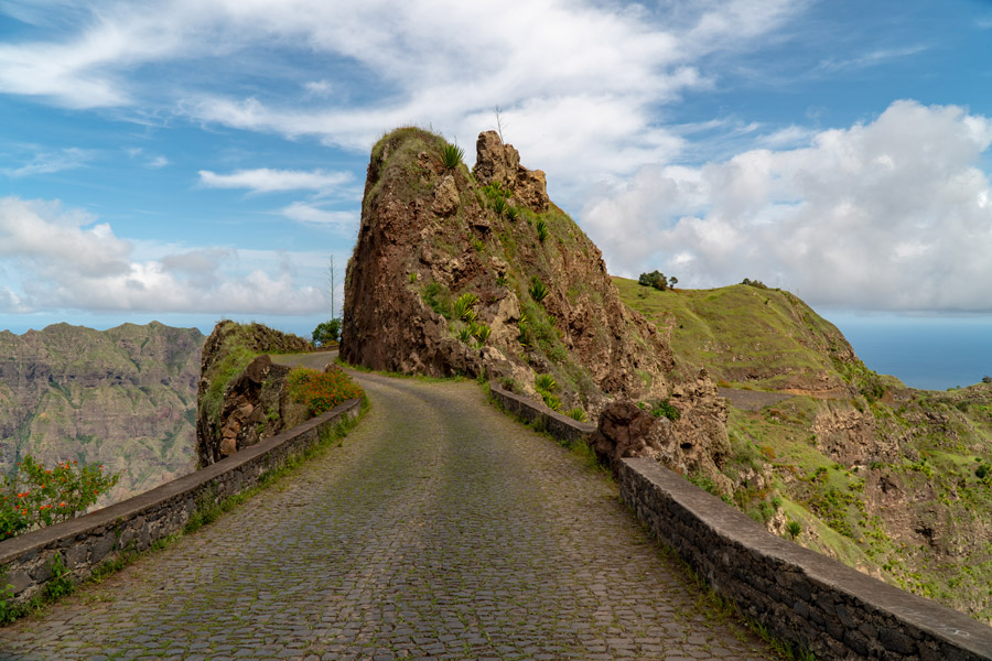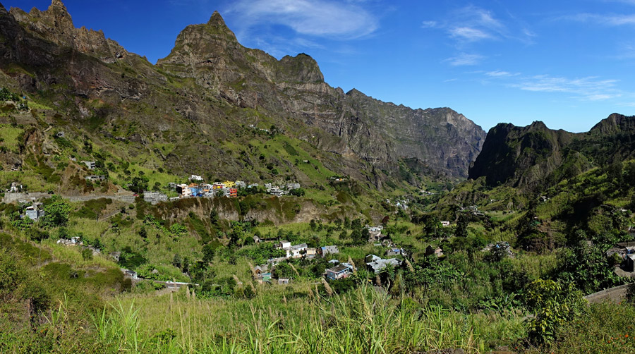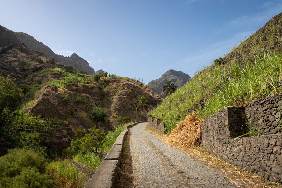 Take the ferry to Santo Antão island (one hour), then transfer by taxi from Porto Novo to Vila das Pombas to hike in the fertile Paul Valley, one of the greenest on the island with terraces planted with sugar cane, bananas, coffee and other tropical crops.