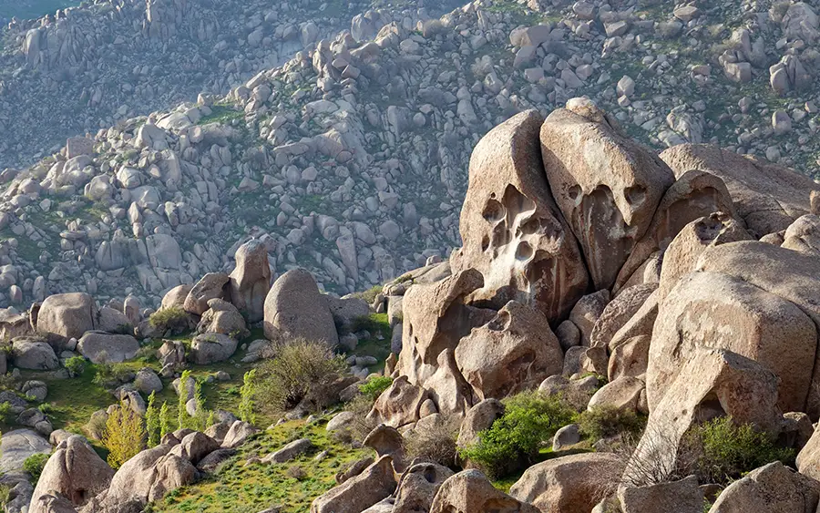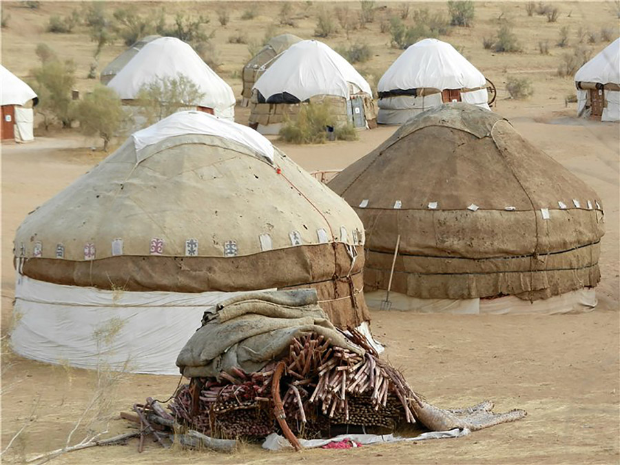 Starting our hike after breakfast, we head through the Kysylkum Desert, continuing this afternoon to the green mountain village of Sentob. On this walk we pass some castle ruins, an old mosque and rock paintings dating from the 5th-6th Century BC.