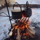 Today's snowshoeing adventure delves into the rich history of the region's ancient rock paintings, which date back 4,000 years. We enjoy a relaxing fireside picnic against the stunning backdrop of these historic artworks before heading back to the cabins. There, we prepare for an exciting few days of hut-to-hut snowshoeing.