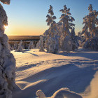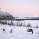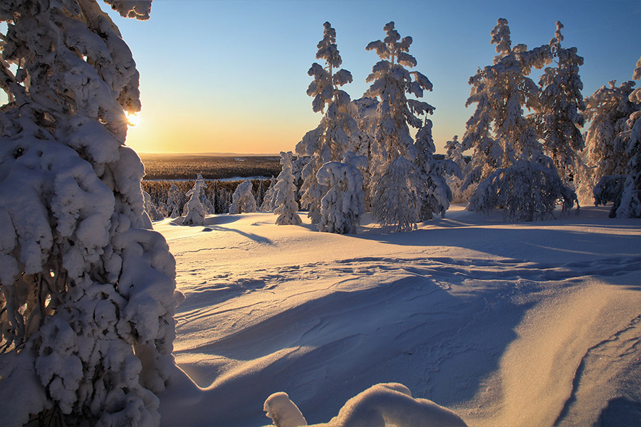 Today we snowshoe across lakes and along ridges, where encounters with reindeer are more likely than with other people. The forests serve as a habitat for various wildlife, including elk, wolves, lynxes, and hares. We continue to Lake Iso-Valkeainen until we reach tonight's wilderness cabins.