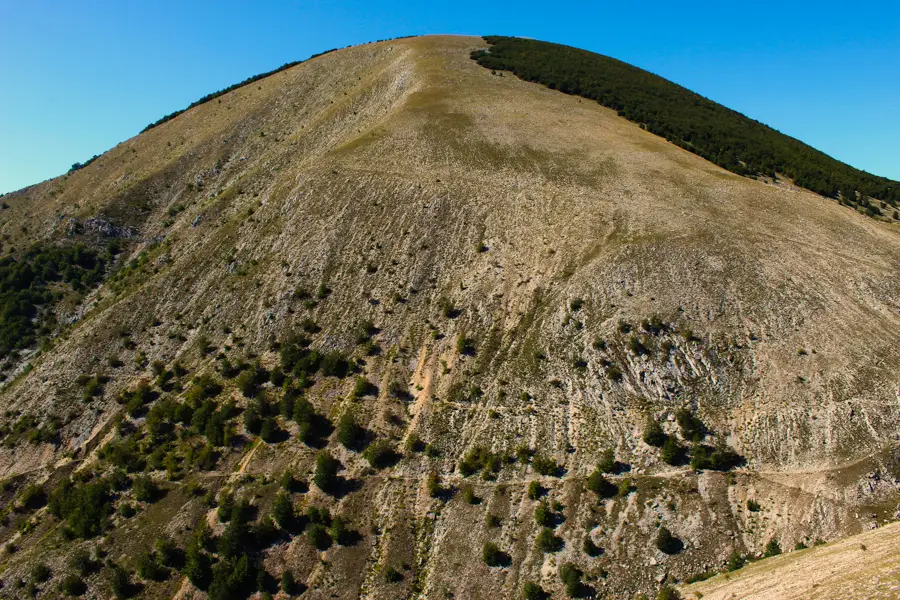 From the peak, the trail descends through lush Bjelasnica pastures, and onto a paved road to the village.