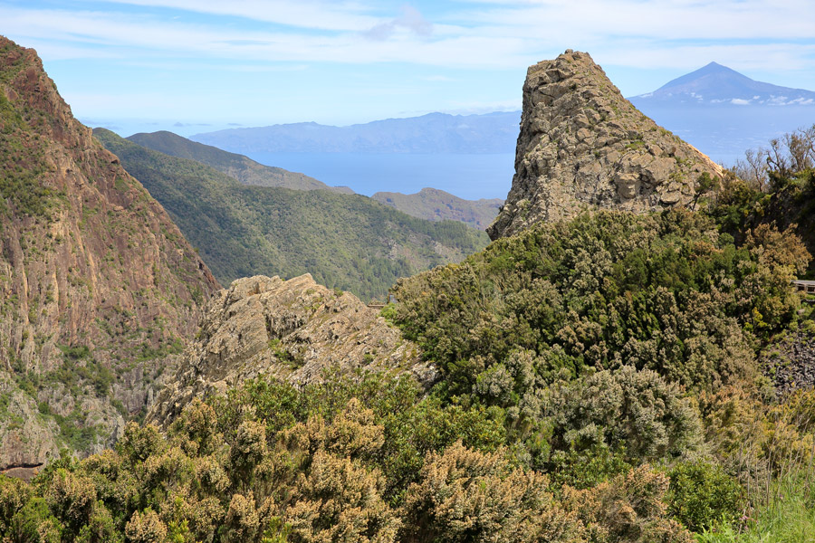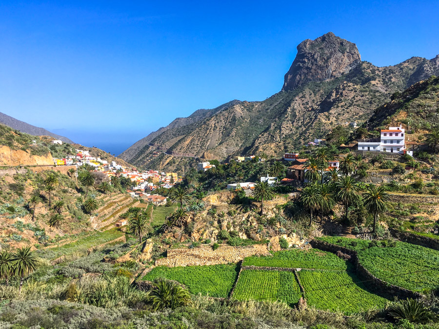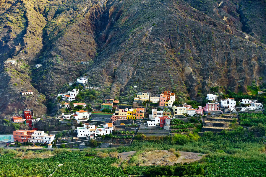 This circular walk route offers fantastic views of Tenerife and the peak of El Teide from a different vantage point from the beginning of the week! It follows the dramatic coastline northward to Hermigua, passing several abandoned villages en route. The final section takes you through a valley with cultivated fields of tropical fruit, including papaya and mango.