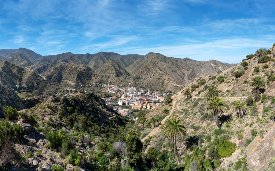 Transfer to the Garajonay Visitors’ Centre at 'Juego de Bolas' and take a short walk through the botanical garden to admire a range of tropical flowers. Afterwards, you walk along the GR132 to Vallehermoso. Points of interest include two natural rock formations, Roque Blanco and Roque Cano, before descending into Vallehermoso.