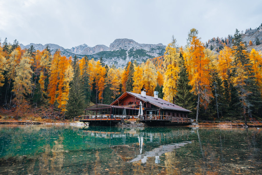 After transferring to Cortina d'Ampezzo, you set off on a short warm-up hike to prepare for the week ahead! Traversing through the forest to Drusé Pass, notable sights include the sheer peak of Tofane and the azure-blue Lake Ghedina before returning to your hotel.