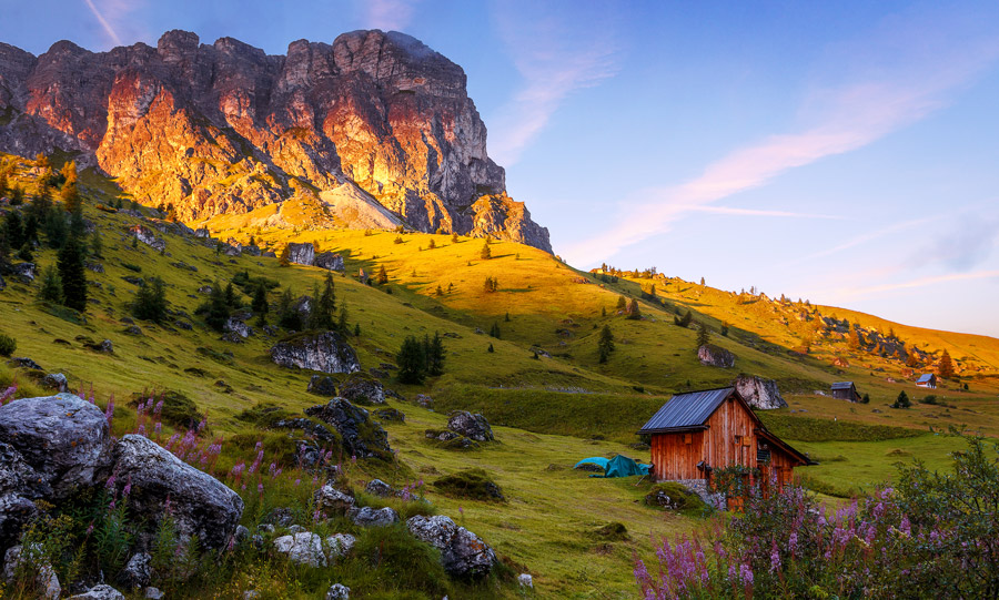The deep valleys, towering cliffs, alpine meadows and snow-capped summits of the Dolomites come together to form arguably the most exquisite mountain landscape in the world. Situated in the heart of this breathtaking scenery is Cortina D'Ampezzo, often referred to as the 'pearl of the Dolomites'. From this base, you have immediate access to hiking trails, allowing you to explore the interior of the Dolomites and the smaller massifs of Tre Cime and Cinque Torre.