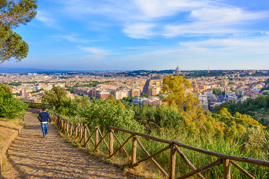 Hike through Insugherata Park, a natural reserve near the city, closer to the Eternal City, Monte Mario Belvedere is a good photo opportunity. From here, you can see the majestic dome of Saint Peter's before descending and reaching Piazza San Pietro, your ultimate destination and the endpoint for countless pilgrims throughout the centuries. If preferred a taxi can be taken.