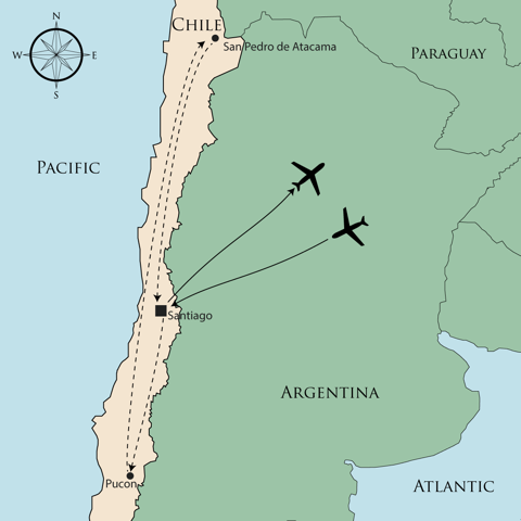 You will visit two of Chile’s most spectacular regions during this tour, starting first with the Lake District before heading North towards the arid, Atacama Desert.