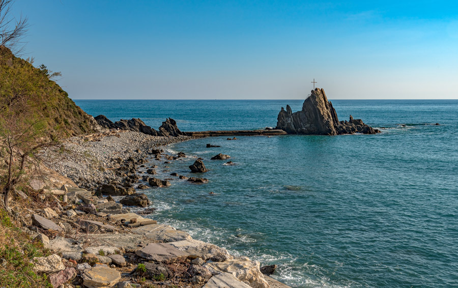 Take the train to the town of Bonassola with your luggage. Climb up to the panoramic point of the Hare Jump, with views of the small village of Montaretto. Once you reach Framura, relax on one of its beautiful beaches. Continue on your walk, navigating a panoramic path with cliff passages and woodland, before returning to Bonnasola.