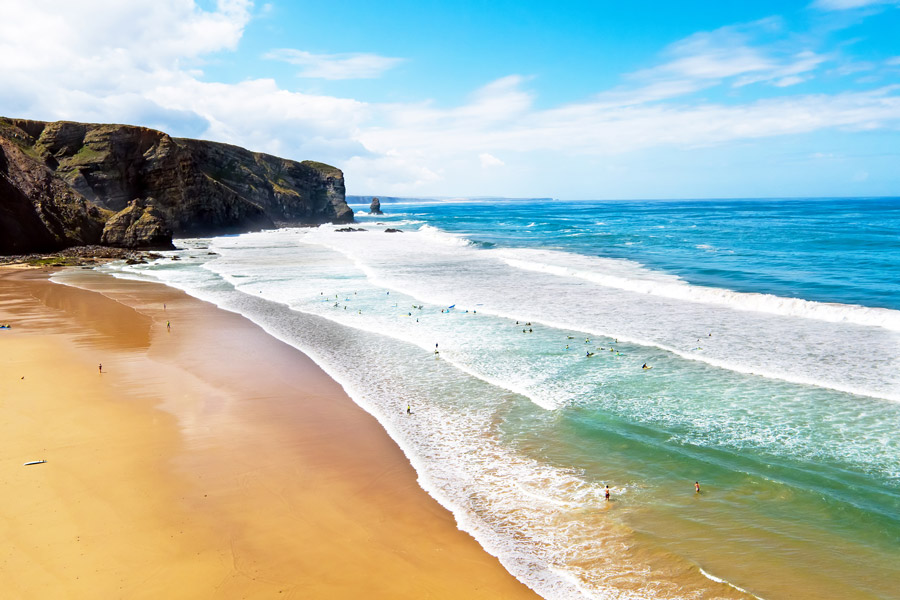 Continue along the unspoilt Vicentine Coast to the attractive village of Arrifana, whose wide beach and Atlantic breakers make it a hotspot for surfers.